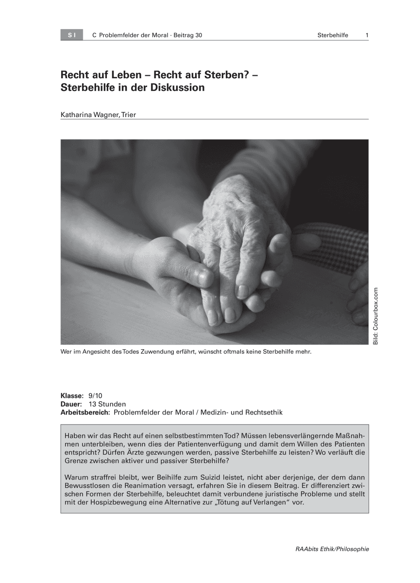 ➔ Worin der Unterschiede zwischen aktiver, passiver und indirekter Sterbehilfe besteht, was Palliativstationen im Gegensatz zu Kinderhospizen leisten und wie man eine Patientenverfügung verfasst, auch darauf antworten unsere Unterrichtseinheiten.
