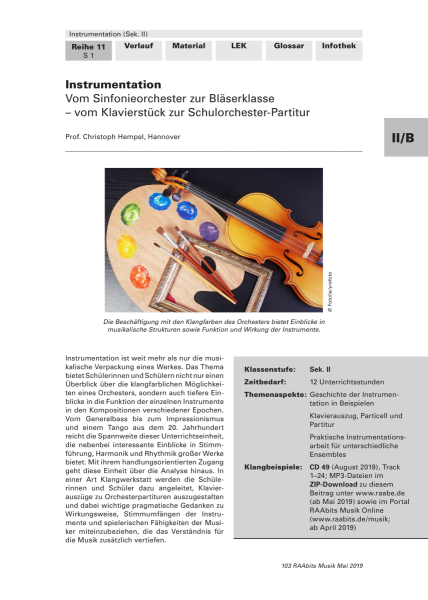 Instrumentation ist weit mehr als nur die musikalische Verpackung eines Werkes. Das Thema bietet Ihren Schülerinnen und Schülern nicht nur einen Überblick über die klangfarblichen Möglichkeiten eines Orchesters, sondern auch tiefere Einblicke in die Funktion der einzelnen Instrumente in den Kompositionen verschiedener Epochen. Vom Generalbass bis zum Impressionismus und einem Tango aus dem 20. Jahrhundert reicht die Spannweite dieser Unterrichtseinheit, die nebenbei interessante Einblicke in Stimmführung, Harmonik und Rhythmik großer Werke bietet. Mit ihrem handlungsorientierten Zugang geht diese Einheit über die Analyse hinaus. In einer Art Klangwerkstatt werden Ihre Schülerinnen und Schüler dazu angeleitet, Klavierauszüge zu Orchesterpartituren auszugestalten und dabei wichtige pragmatische Gedanken zu Wirkungsweise, Stimmumfängen der Instrumente und spielerischen Fähigkeiten der Musiker miteinzubeziehen, die das Verständnis für die Musik zusätzlich vertiefen.
